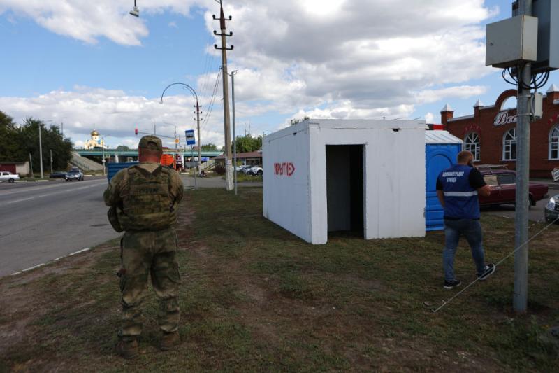 2024年8月12日,在俄乌边境俄方一侧别尔哥罗德州首府别尔哥罗德市,军东说念主在临时掩体旁执勤。新华社发