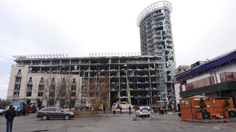 这是2025年1月18日拍摄的乌克兰皆门基辅市舍甫琴科夫斯基区一栋遭“伊斯坎德尔”导弹紧要的办公大楼。新华社记者李东旭摄